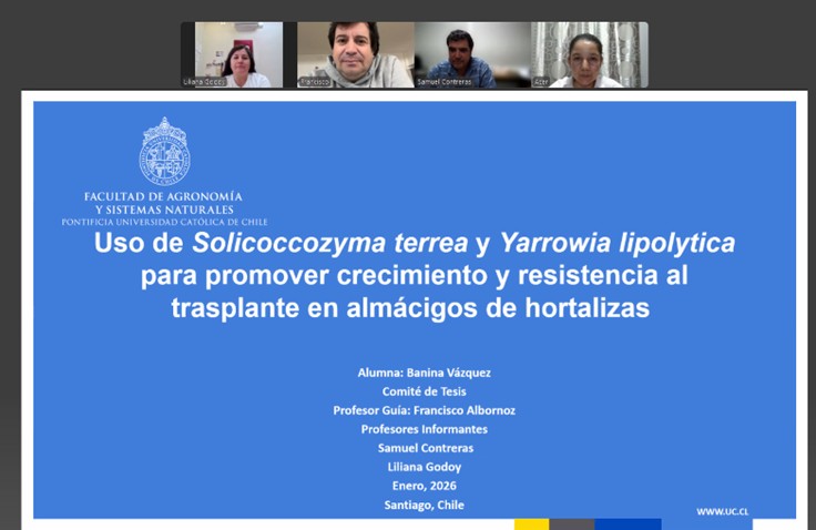 El 26 de enero, la estudiante del Magíster en Fisiología y Producción Vegetal, Banina Lorena Vázquez Saavedra, realizó la defensa de su tesis titulada: “Uso de Solicoccozyma terrea y Yarrowia lipolytica...